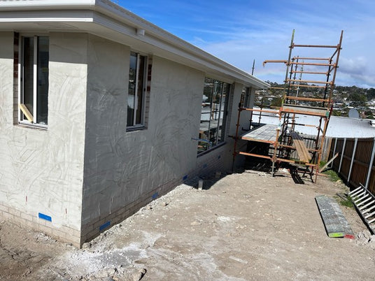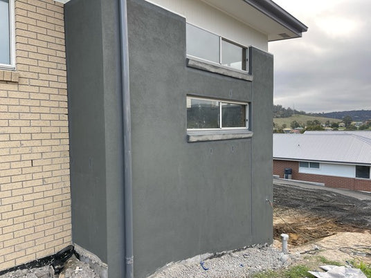 Capturing the rendering process in action as part of the exterior coating works on this community-focused development in Tasmania.